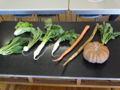 一つ一つ野菜の特徴などを説明すると、滝野川大長ニンジンや東京長カブに「こんな長いニンジン、初めて見ました!」「カブ?大根かと思いました」などの声が上がっていました。